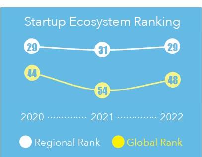 Σύμφωνα με “Startup Blink Global Ecosystem Report 2022”, που χαρτογραφεί 100 startup οικοσυστήματα και 1.000 πόλεις σε 100 χώρες ανά τον κόσμο, η Ελλάδα κερδίζει το 2022 έξι θέσεις στην παγκόσμια κατάταξη έναντι του 2021. Μάλιστα, είναι η μία από τις τρεις χώρες του κόσμου (οι άλλες δύο είναι η Ιρλανδία και η Ινδονησία), που κάνει άλμα στον κατάταξη για το 2022, επανερχόμενη στο “top 50” από την 54η θέση που είχε το 2021.