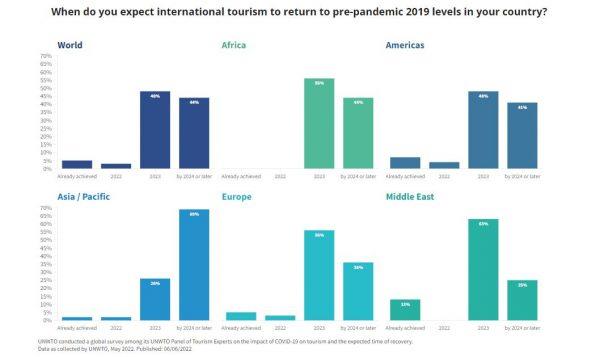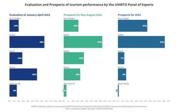 Σύμφωνα με την τελευταία έρευνα του UNWTO Panel of Experts, η συντριπτική πλειοψηφία των επαγγελματιών του τουρισμού (83%) βλέπει καλύτερες προοπτικές για το 2022 σε σύγκριση με το 2021, εφόσον ο ιός περιορίζεται και οι προορισμοί συνεχίζουν να χαλαρώνουν ή να αίρουν τους ταξιδιωτικούς περιορισμούς. Ωστόσο, το συνεχιζόμενο κλείσιμο ορισμένων μεγάλων εξερχόμενων αγορών, κυρίως στην Ασία και τον Ειρηνικό, καθώς και η αβεβαιότητα που προέρχεται από τη σύγκρουση Ρωσίας-Ουκρανίας, θα μπορούσε να καθυστερήσει την αποτελεσματική ανάκαμψη του διεθνούς τουρισμού .