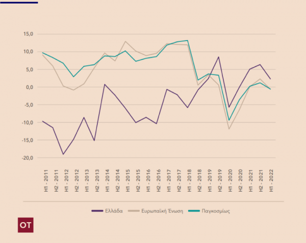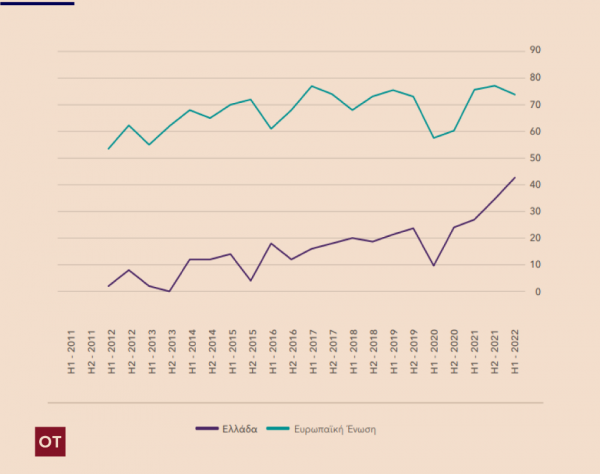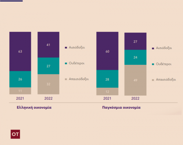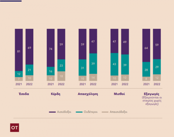 Η ισχυρή ανάπτυξη που καταγράφηκε το α΄ εξάμηνο του 2022, επηρεάζει και τα επίπεδα αισιοδοξίας των Ελλήνων επιχειρηματιών για τις ίδιες τους τις επιχειρήσεις αν και εδώ αυτό έχει σημαντική κάμψη με το αντίστοιχο διάστημα του 2021.