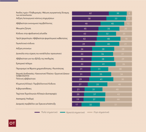 Αναφορικά με τα θέματα που προβληματίζουν για την ανάπτυξη των επιχειρήσεων τους επόμενους 12 μήνες, παρατηρούμε ότι αυτά σήμερα έχουν αλλάξει σημαντικά σε σχέση με το προηγούμενο έτος.