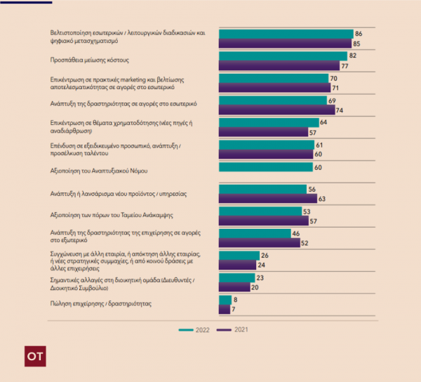 Αναδιοργάνωση λειτουργικών διαδικασιών και ψηφιακός μετασχηματισμός, μείωση του κόστους τους, βελτίωση πρακτικών μάρκετινγκ και αποτελεσματικότητας πωλήσεων, επικέντρωση σε εγχώριες αγορές.