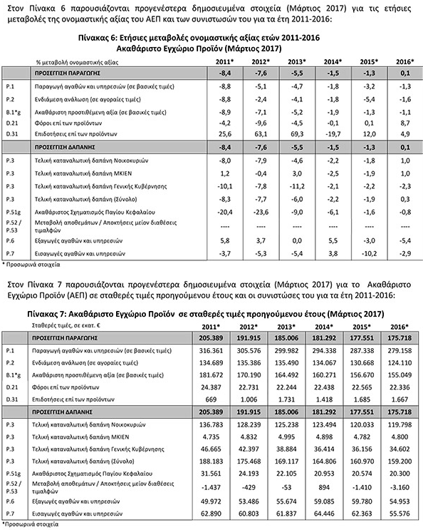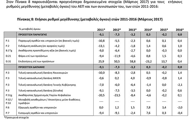 Τελικά, μετά τη σχετική ανακοίνωση της ΕΛΣΤΑΤ και της Eurostat το ΑΕΠ το 2016 δεν παρουσίασε μόνο μία μεγαλοπρεπή μηδενική μεταβολή (0,0%) του ΑΕΠ, αλλά ένα ηχηρό ραπιστικό -0,2% (ύφεση).