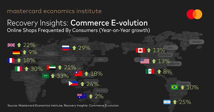 Σύμφωνα με νέα έρευνα της Mastercard (Recovery Insights: Commerce E-volution), οι ψηφιακά ώριμες οικονομίες αύξησαν σημαντικά την ηλεκτρονική κατανάλωση. Οι οικονομίες, που είχαν υιοθετήσει περισσότερες ψηφιακές λύσεις και εφαρμογές πριν από την πανδημία, όπως για παράδειγμα το Ηνωμένο Βασίλειο και οι ΗΠΑ, κατέγραψαν μεγαλύτερα και πιο σταθερά κέρδη από την αυξημένη ροπή των καταναλωτών προς τις ψηφιακές συναλλαγές. Αντίθετα, στις χώρες που είχαν μικρότερο μερίδιο ηλεκτρονικού εμπορίου πριν από την πανδημία, όπως η Αργεντινή και το Μεξικό, η αύξηση των online πωλήσεων ήταν πιο περιορισμένη.