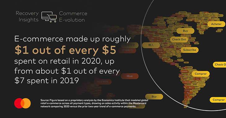 Το 2020 για κάθε $5, που δαπανήθηκαν σε εμπορικές δραστηριότητες, το $1 αφορούσε στο ηλεκτρονικό εμπόριο, ενώ το 2019 η αντίστοιχη αναλογία ήταν $7 προς $1 για το ηλεκτρονικό εμπόριο. Το διεθνές ηλεκτρονικό εμπόριο αυξήθηκε κατά 25%-30% από τον Μάρτιο του 2020 έως τον Φεβρουάριο του 2021.