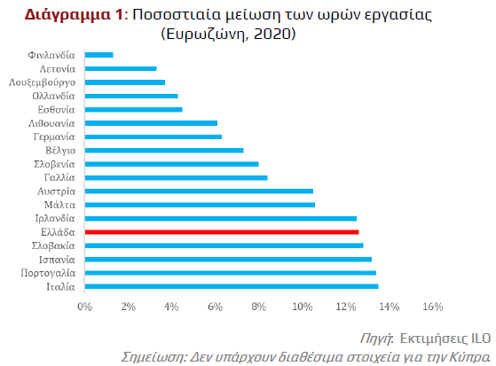 Στην Ελλάδα οι ώρες εργασίας μειώθηκαν κατά 12,6%.