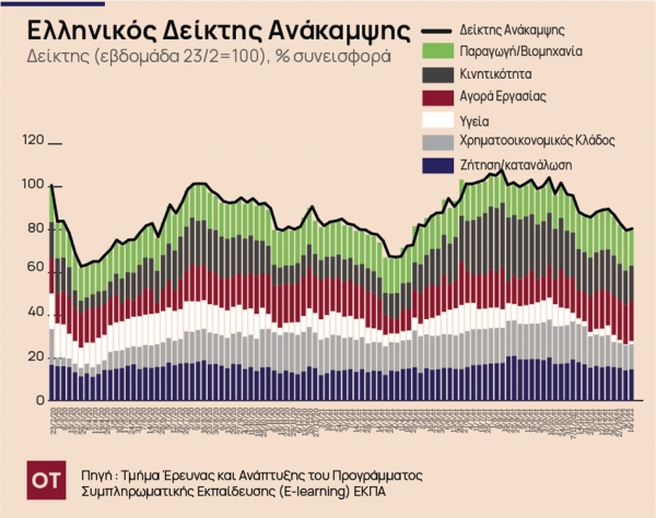 Η μικρή αποκλιμάκωση του πλήθους των κρουσμάτων σε συνδυασμό με τη μεγάλη μείωση του δείκτη ανάκαμψης κατά τις προηγούμενες 3 εβδομάδες, ώθησαν σε βελτίωση του δείκτη ανάκαμψης κατά την εβδομάδα αυτή.