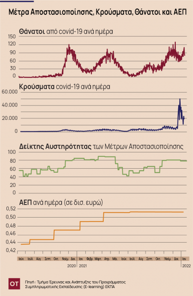 Κατά την εβδομάδα αυτή βελτίωση παρουσίασαν οι επιδόσεις του υποκλάδου της υγείας (αύξηση κατά 1,1 μονάδες) δεδομένης της μείωσης των κρουσμάτων (21893 κρούσματα κατά μέσο όρο κάθε μέρα, από 35.588 κρούσματα την προηγούμενη εβδομάδα) και της μικρής μείωσης του δείκτη θετικότητας σε σχέση με την προηγούμενη εβδομάδα, ενώ από την άλλη μεριά αύξηση παρουσίασε και το πλήθος των θανάτων από την πανδημία (από 84,3 κατά μέσο όρο κάθε μέρα, από 69,1κατά μέσο όρο κάθε μέρα κατά την προηγούμενη εβδομάδα).